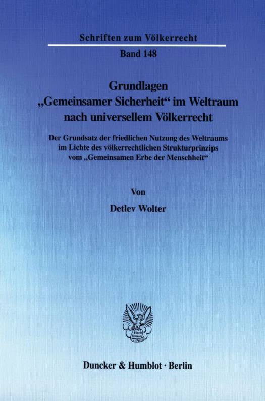 Detlev Wolter untersucht in der vorliegenden interdisziplinären Arbeit die völkerrechtlichen Grundlagen für die Anwendung der sicherheitspolitischen Konzeption »Gemeinsamer Sicherheit« auf den Weltraum. Gestützt auf die Menschheitsklausel als zentralem Strukturprinzip des Weltraumvertrages und das Kooperationsgebot entwirft er eine umfassende Theorie der friedlichen Nutzung des hoheitsfreien Gemeinschaftsraums. Der Strukturwandel des Völkerrechts von einem Koexistenz- zum Kooperationsrecht mit der Herausbildung von Allgemeinwohlinteressen im Völkerrecht wird für die Sicherheit im Gemeinschaftsraum fruchtbar gemacht. Dazu werden Entstehungsgeschichte, Anwendungsbereich und Inhalt des Grundsatzes der friedlichen Nutzung des Weltraums und des Prinzips des Gemeinsamen Erbes der Menschheit anhand der Staatenpraxis in den Vereinten Nationen und der Genfer Abrüstungskonferenz beleuchtet und die global commons-Diskussion auf den Sicherheitsbereich bezogen.