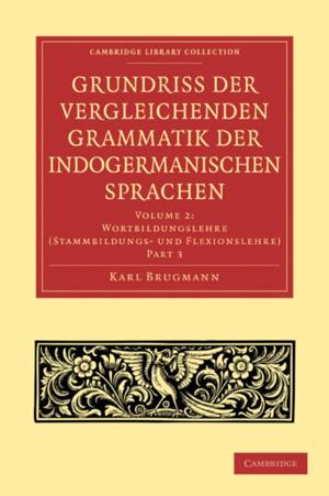 The monumental, multi-volume comparative grammar of the Indo-European languages by Karl Brugmann (1849-1919) provided a synthesis of the first 70 years of research in a rapidly-developing academic subject, and identified areas for future investigation. Volume 2, split into three parts, covers morphology, roots and inflection, beginning with nouns and continuing with pronouns and verbs. It begins with a substantial introduction that includes bibliographic information, and then focuses in turn on each Proto-Indo-European feature and its reflexes in the earliest attested languages of each language family (Sanskrit, Avestan, Armenian, Greek, Italic, Germanic, Old Irish, Balto-Slavic). Comparisons are also made within families, for example between Gothic and Old English. Owing to its length, the original publisher bound this volume in two parts, paginated as a single sequence; in this reissue, it is divided into three parts, maintaining the same pagination.