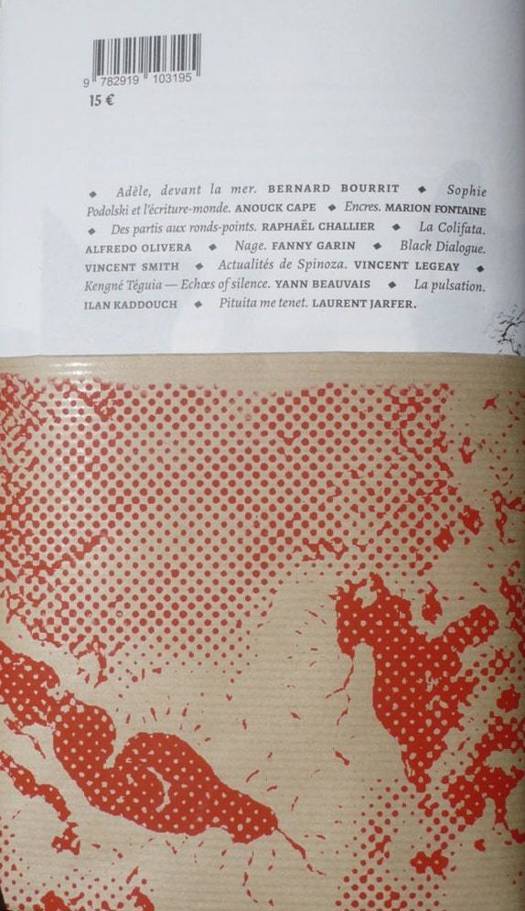 SOMMAIRE : Sociologie / RAPHAËL CHALLIER « Simples militants », sociologie comparée de lengagement politique (FN, JC, UMP) en milieu populaire dans la France contemporaine. Musique / ILAN KADDOUCH Introduction dune catégorie abstraite dans lexpérience musicale : la pulsation. Philosophie / VINCENT LEGEAY Actualités de Spinoza. La notion dessence chez Spinoza et la notion despèce en biologie moderne. Psychiatrie / ALFREDO OLIVERA Naissance de La Colifata (interview) Cinéma / YANN BEAUVAIS Kengné Téguia : echoes of silence. Littérature / BERNARD BOURRIT Adèle, devant la mer. ANOUCK CAPE Sophie Podolski et lécriture-monde. Poésie / FANNY GARIN Nage. LAURENT JARFER Pituita me tenet. Art / VINCENT D. SMITH BLACK DIALOGUE avec Vincent Smith. (traduit par Laurent Jarfer) Dessin / MARION FONTAINE Essaim météorique dApex aux fibres intrafusoriales, encres.