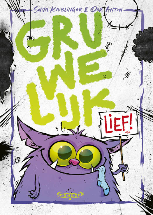 In Gruwelijk lief van Sonja Kaiblinger ontmoeten we Lodewijk. In een vuilnisbak, waar de pestkop van de klas hem net wéér in heeft gegooid. Maar deze keer zit hij er niet alleen! Lodewijk ontmoet een paars, harig monster met reusachtige ogen, een klein buikje en puntige snijtanden. Wat is dit voor een wezen? Het volgt Lodewijk overal waar hij gaat. Het monstertje is onvoorspelbaar en chaotisch en zorgt voor allerlei problemen, maar is ook erg lief. Kan Lodewijk hem zo goed mogelijk verbergen én beschermen?