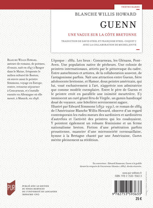 L’époque : 1882. Les lieux : Concarneau, les Glénans, Pont- Aven. Une population native de pêcheurs. Une colonie de peintres internationaux, attirés par le pittoresque du cadre. Entre autochtones et artistes, de la collaboration souvent, de l’antagonisme parfois. Naît une attraction entre Guenn, fière adolescente bretonne, et Hamor, doux peintre américain, qui lui, voué exclusivement à l’art, n’apprécie son admiratrice que comme modèle exemplaire. Entre le père de Guenn et le peintre croît en parallèle une inimitié meurtrière. S’y immiscent un curé géant féru de Virgile, un gamin handicapé doué de voyance, une hôtelière sereinement sagace.