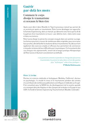 Après avoir décrit dans Réveiller le Tigre le processus naturel qui permet de se reconstruire après un traumatisme, Peter Levine développe son approche, la Somatic Experiencing, dans ce manuel, qui démontre avec force que la clé de la guérison d’un traumatisme se trouve « par-delà les mots » dans notre corps et dans nos instincts. « Ce deuxième livre de Peter Levine élargit et précise les concepts évoqués dans son premier ouvrage. Tous les lecteurs pourront y trouver de nombreuses idées originales, pour eux et pour leurs proches, afin de faciliter la résolution de leurs traumatismes. Tous y trouveront également des exercices simples et efficaces leur permettant de commencer à résoudre certaines de leurs difficultés post-traumatiques. Tous trouveront enfin dans ce livre des cas cliniques très touchants, venant de la longue pratique thérapeutique de Peter Levine et illustrant concrètement sa méthode. » « Les praticiens amenés à prendre en charge des personnes traumatisées trouveront en plus dans ce livre des parties plus ‘‘techniques’’ utiles à leur pratique. »
