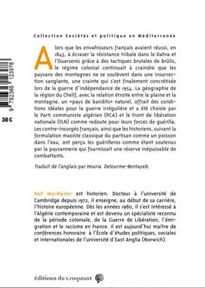 Alors que les envahisseurs français avaient réussi, en 1843, à écraser la résistance tribale dans le Dahra et l'Ouarsenis grâce à des tactiques brutales de brûlis, le régime colonial continuait à craindre que les paysans des montagnes ne se soulèvent dans une insurrection sanglante, une crainte qui s'est finalement concrétisée lors de la guerre d'indépendance de 1954. La géographie de la région du Chelif, avec la relation étroite entre la plaine et la montagne, un "pays de bandits" naturel, offrait des conditions idéales pour la guerre irrégulière et a été choisie par le Parti communiste algérien (PCA) et le Front de libération nationale (FLN) comme redoute pour leurs forces de guérilla. ¹ Les contre-insurgés français, ainsi que les historiens, suivant la formulation maoïste classique du partisan comme un fish dans l'eau, ont perçu les guérilleros comme étant crucialement soutenus par la paysannerie qui fournissait une réserve inépuisable de combattants, de guides, de cuisiniers, de messagers, de guetteurs et de transporteurs muletiers, et transporteurs de mules, et qui en même temps fournissait une connaissance intime ou des renseignements sur la politique quotidienne de chaque famille, ses armes et ses réseaux claniques, et les ressources de l'environnement montagneux, ses pistes secrètes, ses grottes et ses sources.