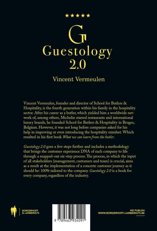 Vincent Vermeulen, founder and director of School for Butlers & Hospitality, is the fourth generation within his family to earn his spurs in the hospitality sector. After his career as a butler, which earned him a worldwide network of star restaurants and international luxury brands, among others, he founded School for Butlers in Bruges. However, it was not long before companies asked for his help in improving or even introducing the hospitality mindset. This also resulted in the book What can we learn from butlers. Guestology 2.0 goes a few steps further and includes a methodology that brings to life each company's customer experience DNA thanks to a mapped out six-step path. The path, in which the imput of all stakeholders (management, customers and team) is crucial, aims to result in the implementation of a concrete customer journey as it should be: 100% tailored to the company. Guestology 2.0 is there for any company, regardless of sector.