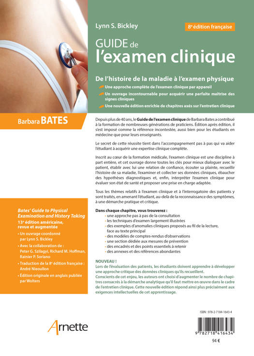 Depuis plus de 40 ans, le Guide de l’examen clinique de Barbara Bates a contribué à la formation de nombreuses générations de praticiens. Édition après édition, il s’est imposé comme la référence incontestée, aussi bien pour les étudiants en médecine que pour leurs enseignants.