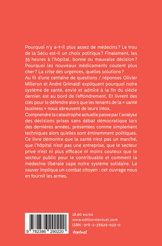 Pour défendre notre système de santé, il faut le connaître, comprendre son fonctionnement, son histoire et les rapports de force qui en découlent. Dans un système de questions / réponse, Olivier Milleron et André Grimaldi, deux médecins engagés pour la défense du service public, donnent des armes à ceux qui veulent mener le combat pour un système de santé solidaire de qualité pour toutes et tous.