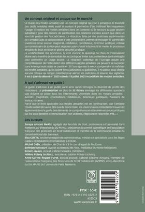 Le Guide des modes amiables est un concept original qui vise à présenter la diversité des outils amiables mais aussi et surtout à permettre d'en maîtriser techniquement l'usage. Il replace les modes amiables dans un contexte où le recours au juge devient subsidiaire pour des raisons de pacification des relations sociales autant que dans un souci de gestion des flux judiciaires. La rédaction, faite par des praticiens expérimentés de l'amiable avec la collaboration d'une universitaire, permet d'envisager la variété des questions qu'un avocat, magistrat, médiateur, conciliateur, directeur juridique, notaire ou commissaire de justice peut se poser pour choisir le bon outil et mener le processus amiable de bout en bout en pleine sécurité juridique.