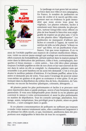 Les jardineries ne manquent d'ailleurs pas, fiches et conseils à l'appui, de vanter les mérites de telle ou telle plante "à fleurs ou non" qui filtre, tel un purificateur d'ambiance, l'air que nous respirons. Il en va ainsi de l'orchidée papillon aux nuances de couleurs multicolores (blanc, rose, violet ou encore jaune-orangé) qui soulage son environnement des effets sournois du formaldéhyde, présent partout dans la maison puisqu'il entre dans la fabrication des peintures, colles à bois, contreplaqués, moquettes et tissus muraux - entre autres... Son côté déco place presque toujours l'orchidée papillon en tête de nos choix et lui vaut souvent de trôner dans le salon où elle se complaît. Le charnaedorea, palmier nain qui ressemble à un petit bambou est lui aussi très demandé. C'est à n'en pas douter le meilleur palmier d'intérieur. Il s'acclimate partout, adore la lumière et demande peu de soins. Vous aurez l'avantage de pouvoir semer vous-même ses graines et de gérer sa croissance à votre guise. Il est performant dans la dépollution du xylène (feu de bois, cheminées), de l'ammoniac ou encore du benzène (plastiques, colorants, détergents...). 40 plantes parmi les plus performantes et faciles à se procurer sont ainsi répertoriées dans ce guide pratique, oeuvre d'une botaniste amateur passionnée. Il vous sera indispensable pour choisir la ou les plantes qui convient le mieux à votre environnement et aussi la plus performante en matière de dépollution. Tous les conseils (arrosage, plantation, bouturage, semis, température, lieu privilégié pour la plante, mises en garde diverses...) sont consignés dans ce guide. Si ces plantes consommatrices de polluants ne suffisent pas toujours à rendre votre maison totalement saine, elles contribueront largement à en atténuer les effets nocifs, ce qui, forcément, améliorera dans des proportions non négligeables le bien-être de tous les occupants.