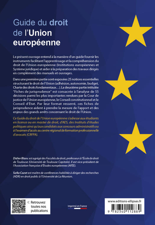Ce guide fournit les instruments facilitant la compréhension et l’apprentissage du droit de l’Union européenne (Institutions européennes et Système juridique) et aide à la préparation des travaux dirigés.