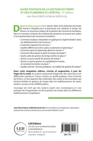 Dans cette cinquième édition, révisée et augmentée, à jour du Ségur de la santé, les auteurs proposent d’apporter des réponses à ces différentes questions. Conçu comme un guide pratique (sous la forme de fiches), ce livre apporte des méthodes, des outils et des exemples qui doivent faciliter la gestion du temps dans les établissements de santé, médico-sociaux et les EHPAD publics. L’ouvrage est écrit par des auteurs ayant une connaissance et une pratique de l’organisation et de la gestion du temps dans les différents établissements hospitaliers.