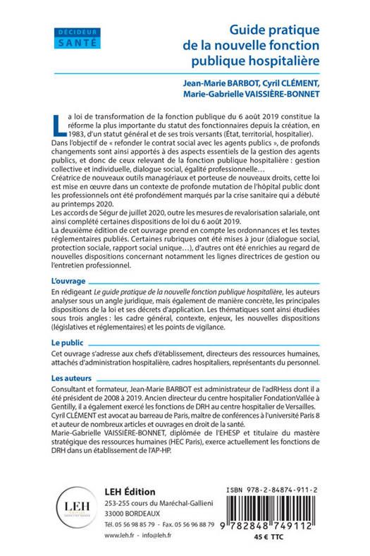Le public Cet ouvrage s’adresse aux chefs d’établissement, directeurs des ressources humaines, attachés d’administration hospitalière, cadres hospitaliers, représentants du personnel.