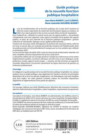 L’ouvrage En rédigeant Le guide pratique de la nouvelle fonction publique hospitalière, les auteurs analyser sous un angle juridique, mais également de manière concrète, les principales dispositions de la loi et ses décrets d’application. Les thématiques sont ainsi étudiées sous trois angles : les cadre général, contexte, enjeux, les nouvelles dispositions (législatives et réglementaires) et les points de vigilance.