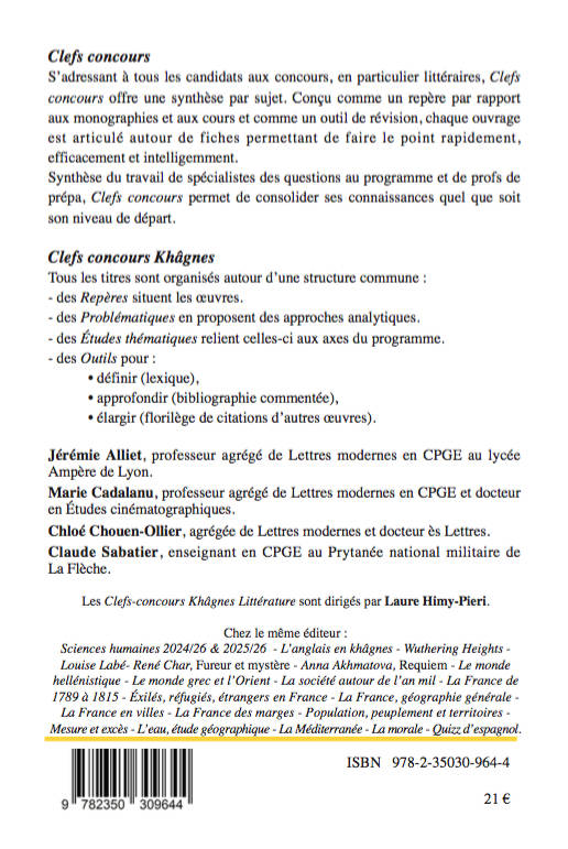 Traitant du sujet de composition de Lettres du concours des ENS pour la session 2024-2025, cet ouvrage réunit des spécialistes des différentes œuvres au programme et des enseignants des classes concernées pour offrir un ouvrage extrêmement pratique et intelligent dans une collection plébiscitée par les élèves et leurs professeurs.