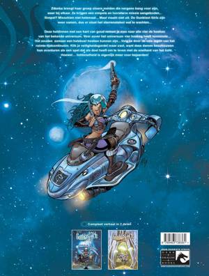 Deze heldinnen met een hart van goud nemen je mee naar alle vier de hoeken van het bekende universum. Voor zover het universum vier hoeken heeft tenminste... Het zouden zomaar een heleboel hoeken kunnen zijn...Volg ze door de vele lagen van het ruimte-tijdcontinuu?m. Klik je veiligheidsgordel maar vast, want deze dames beschouwen hun avonturen als een spel dat als doel heeft om te leven met de snelheid van het licht. Hoewel... lichtsnelheid is eigenlijk meer voor bejaarden!