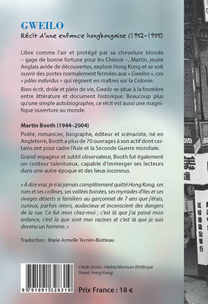 Libre comme l’air et protégé par sa chevelure blonde – gage de bonne fortune pour les Chinois –, Martin, jeune Anglais avide de découvertes, explore Hong Kong et se voit ouvrir des portes normalement fermées aux « Gweilos », ces « pâles individus » qui règnent en maîtres sur la Colonie. Bien écrit, drôle et plein de vie, Gweilo se situe à la frontière entre littérature et document historique. Beaucoup plus qu’une simple autobiographie, ce récit est aussi une magnifique ouverture au monde.