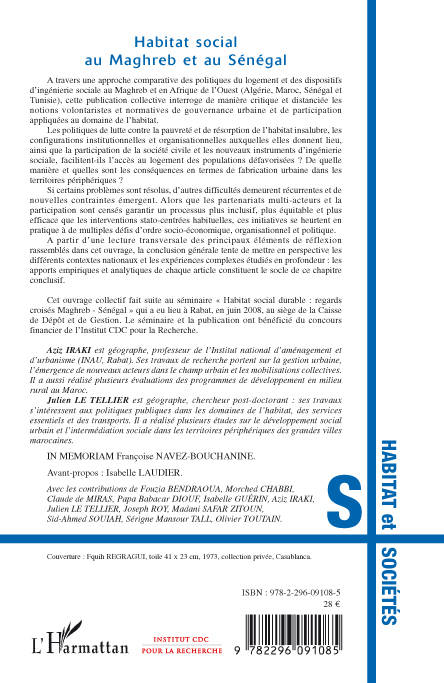A travers une approche comparative des politiques du logement et des dispositifs d'ingénierie sociale au Maghreb et en Afrique de l'Ouest, cette publication collective interroge les notions volontaristes et normatives de gouvernance urbaine et de participation appliquées au domaine de l'habitat. Les politiques de lutte contre la pauvreté et de résorption de l'habitat insalubre ainsi que la participation de la société civile facilitent-ils l'accès au logement des populations défavorisées ?