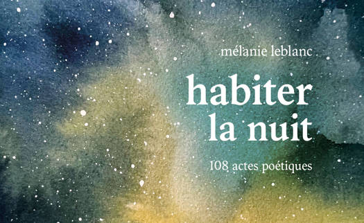 "La nuit s'installe et je l'habite comme un corps", écrivait Marguerite Duras. L'habiter, ou la recoudre, la parfumer, l'écouter... À partir des 108 actes qui composent ce recueil, Mélanie Leblanc nous invite à nous emparer de la nuit, seul·e ou à plusieurs. À y faire poème, avec ou au-delà des mots. À résister, par le jeu et la douceur.