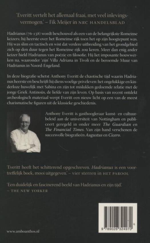 Een nieuwe grote biografie van keizer Hadrianus, de meest charismatische keizer ooit.In deze biografie schetst Anthony Everitt de chaotische tijd waarin Hadrianus heerste, maar schrijft ook over zijn woelige privéleven: over het ongelukkige en kinderloze huwelijk met Sabina en zijn gedoemde relatie met de jonge Griek Antinoüs, de liefde van zijn leven. Op basis van nieuw, recent ontdekt archeologisch materiaal werpt Everitt een nieuw licht op een van de meest charismatische figuren uit de klassieke geschiedenis.
