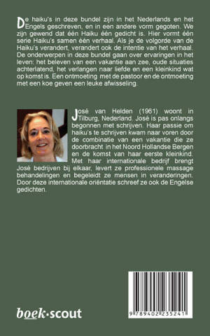 De haiku’s in deze bundel zijn in het Nederlands en het Engels geschreven, en in een andere vorm gegoten. We zijn gewend dat één Haiku één gedicht is. Hier vormt één serie Haiku’s samen één verhaal. Als je de volgorde van de Haiku’s verandert, verandert ook de intentie van het verhaal. De onderwerpen in deze bundel gaan over ervaringen in het leven: het beleven van een vakantie aan zee, oude situaties achterlatend, het verlangen naar liefde en een kleinkind wat op komst is. Een ontmoeting met de pastoor en de ontmoeting met een koe geven een leuke afwisseling.