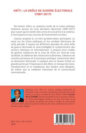 Nul besoin d’être un analyste lucide de la scène politique haïtienne durant les trois dernières décennies (1987-2017) pour savoir que le verdict des urnes est une prime à la violence, à l’escroquerie et aux sources de financement occultes. L’auteur propose ici, en tant qu’observateur-participant, un essai sur les luttes politiques et les combats électoraux de cette période. Il expose les différents épisodes de cette drôle de guerre électorale et rend intelligible le comportement des acteurs nationaux et internationaux. Il analyse leurs modes de gestion médiocres de la crise de l’État sur fond de crise sociétale, la faiblesse des institutions haïtiennes, l’absence de couches porteuses et le processus politique, notamment dans sa dimension électorale. Il explique ainsi le drame d’Haïti en grande partie par l’impuissance des élites, le manque de vision, l’amateurisme et la maladresse des leaders auto-désignés, de même que la solidarité intéressée de la communauté internationale…