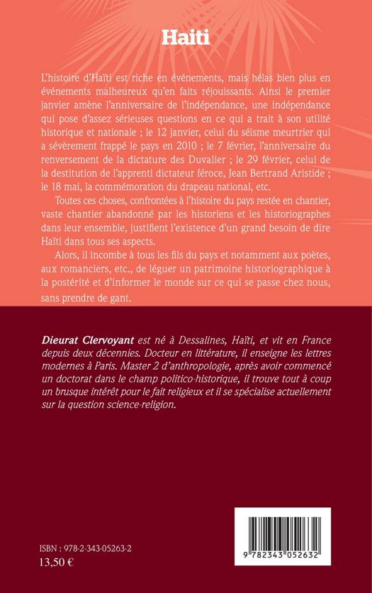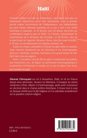 L'histoire d'Haïti est riche en évènements, mais hélas bien plus en évènements malheureux qu'en faits réjouissants. Ainsi le premier janvier amène l'anniversaire de l'indépendance , une indépendance qui pose d'assez sérieuses questions en ce qui a trait à son utilité historique et nationale. Alors, il incombe à tous les fils du pays et notamment aux poètes et romancier, etc., de léguer un patrimoine historiographique à la postérité et d'informer le monde sur ce qui se passe chez nous, sans prendre de gant.