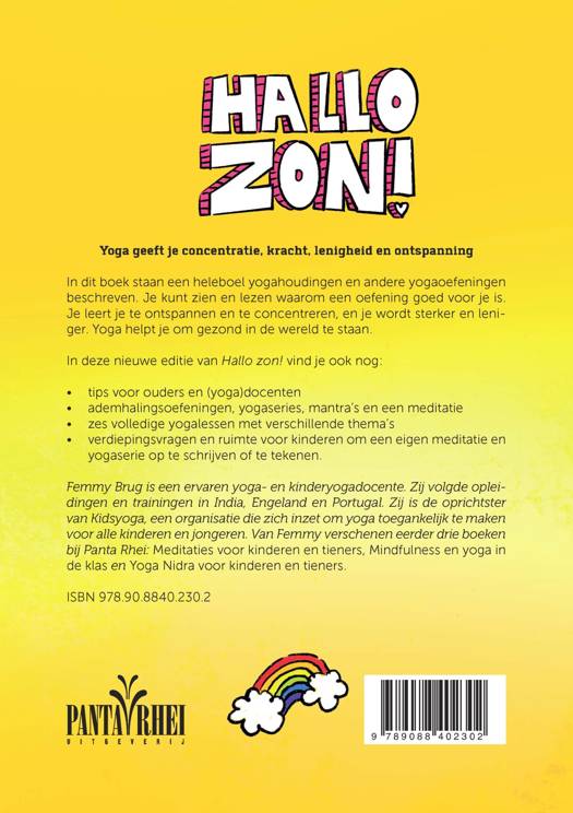 Deze nieuwe editie van Hallo zon! beschrijft yogahoudingen en andere yogaoefeningen voor kids en teens om ze te helpen gezond in de wereld te staan. Zij kunnen het boek zelf gebruiken als ondersteuning bij het thuis doen van yoga. Bij elke oefening staat beschreven waar je op kunt letten en waarom het goed voor je is. Alle houdingen en oefeningen worden geïllustreerd met full colour foto’s.