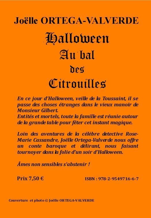 Loin des aventures de la célèbre détective Rose-Marie Cassandre, Joëlle Ortega-Valverde nous offre un conte baroque et délirant, nous faisant tournoyer dans la folie d'un soir d'Halloween. Âmes non sensibles s'abstenir !
