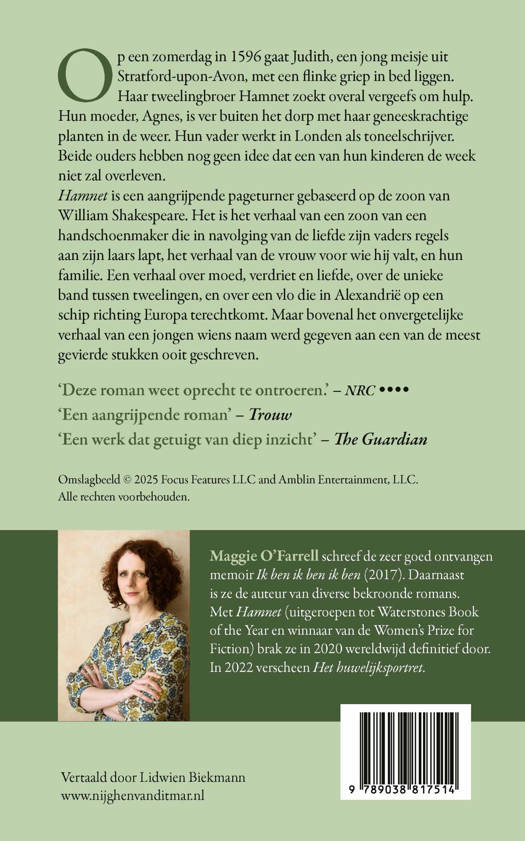 Hamnet is een aangrijpende pageturner gebaseerd op de zoon van William Shakespeare. Het is het verhaal van een zoon van een handschoenmaker die in navolging van de liefde zijn vaders regels aan zijn laars lapt, het verhaal van de vrouw voor wie hij valt, en hun familie. Een verhaal over moed, verdriet en liefde, over de unieke band tussen tweelingen, en over een vlo die in Alexandrië op een schip richting Europa terechtkomt. Maar bovenal het onvergetelijke verhaal van een jongen wiens naam werd gegeven aan een van de meest gevierde stukken ooit geschreven.