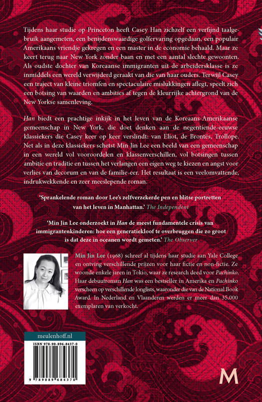 Han is een prachtige inkijk in het leven van de Koreaans-Amerikaanse gemeenschap in New York, die doet denken aan de negentiende-eeuwse klassiekers die Casey keer op keer verslindt: van Eliot, de Brontës, Trollope. Net als in deze klassiekers schetst Min Jin Lee een beeld van een gemeenschap in een wereld vol vooroordelen en klassenverschillen, vol botsingen tussen ambitie en traditie en tussen het verlangen een eigen weg te kiezen en angst voor verlies van decorum en van de familie-eer. Het resultaat is een veelomvattende, indrukwekkende en zeer meeslepende roman.