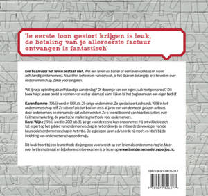 Karen Romme (1965) werd in 1991 als 25-jarige ondernemer. Ze specialiseert zich sinds 1998 in het ondernemerschap zelf. Ze schreef zestien boeken en is al jaren een van de meest gelezen auteurs door ondernemers en mensen die dat willen worden. Ze is vooral bekend van haar bestsellers over Calimeromarketing, de praktische marketingmethode voor ondernemers. Karel Wijne (1966) werd in 2001 als 35-jarige voor de eerste keer ondernemer. Hij ontwikkelde zich tot expert op het gebied van ondernemerschap in het onderwijs en initieerde de voorloper van de keuzedelen ondernemerschap in het mbo. De afgelopen jaren adviseerde hij mbo’s en hbo’s bij de inrichting van ondernemerschapsonderwijs.