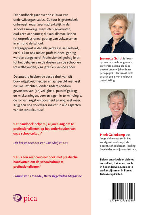 Dit handboek gaat over de cultuur van onderwijsorganisaties. Cultuur is grotendeels onbewust, maar zeer nadrukkelijk in de school aanwezig. Ingesleten gewoonten, oud zeer, aannames; dit kan allemaal leiden tot onprofessioneel gedrag van volwassenen in en rond de school. Uitgangspunt is dat alle gedrag is aangeleerd, en dus kan ook nieuw, professioneel gedrag worden aangeleerd. Professioneel gedrag leidt tot het behalen van de doelen van de school en tot welbevinden, van jezelf en van de ander.