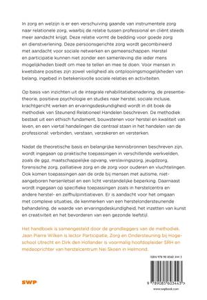 Op basis van inzichten uit de integrale rehabilitatiebenadering, de presentietheorie, positieve psychologie en studies naar herstel, sociale inclusie, krachtgericht werken en ervaringsdeskundigheid wordt in dit boek de methodiek van Steunend Relationeel Handelen beschreven. De methodiek bestaat uit een ethisch fundament, bouwstenen voor herstel en kwaliteit van leven, en een viertal handelingen die centraal staan in het handelen van de professional. Deze zogenaamde kernhandelingen zijn: verbinden, verstaan, verzekeren en versterken.