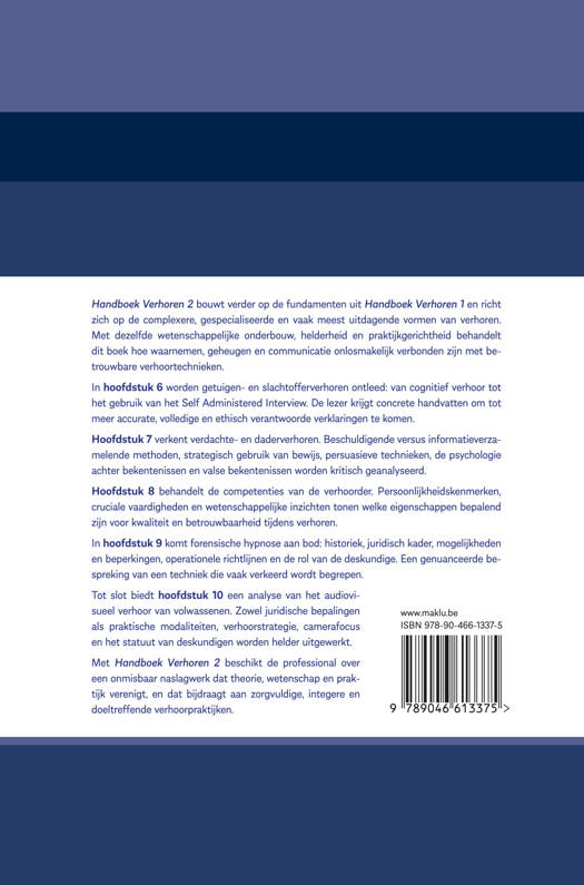 Met Handboek Verhoren 2 beschikt de professional over een onmisbaar naslagwerk dat theorie, wetenschap en praktijk verenigt, en dat bijdraagt aan zorgvuldige, integere en doeltreffende verhoorpraktijken.