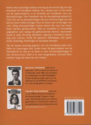 Iedere dienstplichtige soldaat ontving op de eerste dag van zijn diensttijd het Handboek soldaat. Nu, zestien jaar na het einde van de opkomstplicht, is er eindelijk een handboek voor ex-dienstplichtigen. Het Handboek voor de dienstplichtig soldaat b.d. richt zich op ex-dienstplichtigen die hun herinneringen aan die tijd tot leven willen brengen door te lezen over ervaringen van ruim vijftig dienstplichtigen b.d. die voor het handboek werden geïnterviewd. Wat ze vertelden is thematisch uitgesplitst over zestig rijk geïllustreerde thema's waaronder Koude te velde, Verveling, Discipline, Legering in Duitsland, Uitzending naar Libanon, Verlof, De opkomst, Wachtlopen, Het vijandbeeld, Ouderdag, Haarlengte en Gematste baantjes.