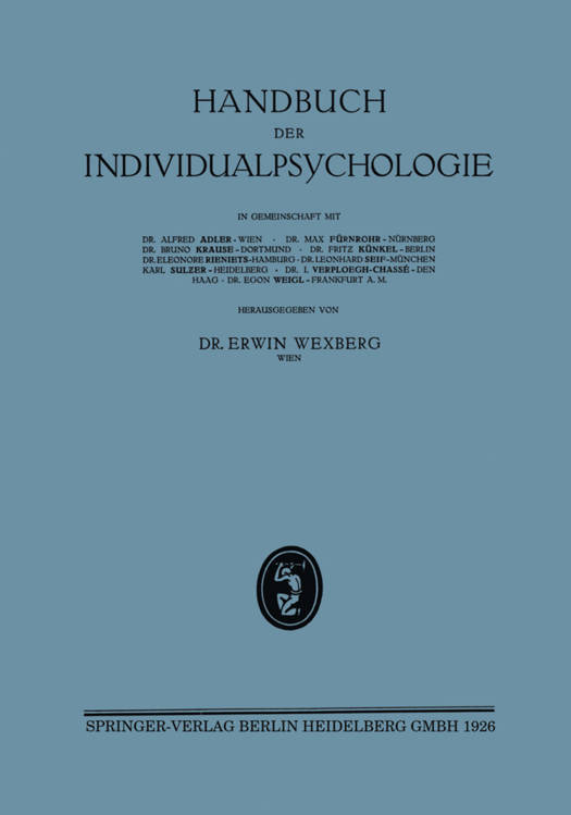Egon Wexberg, Alfred Adler, Max Fürnrohr, Bruno Krause, Fritz Künkel, Eleonore Rieniets, Leonhard Seif, Karl Sulzer, I Verploegh-Chassé, Egon Weigl
