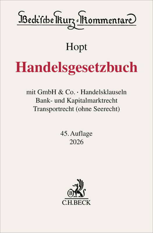 Zum WerkDank seiner thematischen Spannweite und seines hervorragenden Preis-Leistungs-Verhältnisses ist der für die Praxis optimierte "Hopt" der beliebteste Wirtschaftsrechtskommentar seiner Klasse. Der jährliche Erscheinungsrhythmus bürgt für verlässliche Aktualität.