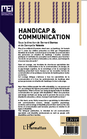Un humain sur sept vit avec un handicap. Comment peut-on faciliter la communication des personnes en situation de handicap ? Une trentaine de chercheurs spécialistes des sciences de l'information et de la communication, du design, de la psychologie cognitive, de la sémiotique et de la sociologie du handicap présentent leurs travaux sur les nouvelles formes de communication et les pratiques inclusives du handicap dans toutes ces formes. (Des articles en français et en anglais).