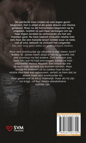 Walker St. James heeft altijd in het nu geleefd, het ene avontuur na het andere. Zich settelen was nooit iets wat hij had overwogen, totdat hij háár ontmoette. Hanna Mayson. Een vrouw op wie hij makkelijk verliefd zou kunnen worden. Maar terwijl hij probeert uit te zoeken hoe hij een relatie met haar kan opbouwen, vertelt ze hem dat ze alleen maar een avontuurtje wil.