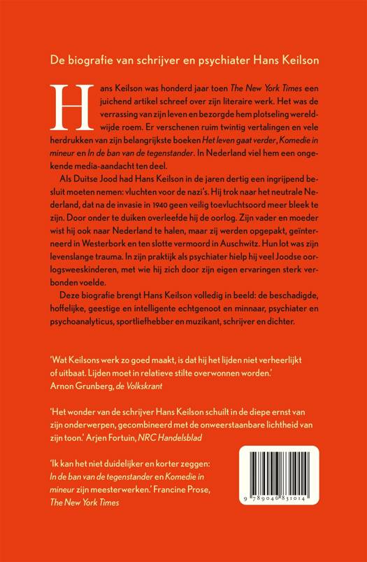 De honderdjarige Duits-Joodse Hans Keilson, in de jaren dertig naar Nederland gevlucht, werd in 2010 door The New York Times als een van de grootste schrijvers ter wereld gekwalificeerd. In korte tijd verschenen zijn boeken in meer dan twintig landen, en opeens was hij een bestsellerauteur. In zijn belangrijkste boeken Het leven gaat verder, Komedie in mineur en In de ban van de tegenstander geeft Keilson een beeld van de roerige Weimar-periode, het gevaarlijke leven van een onderduiker en de psyche van Adolf Hitler. Dat zijn ouders de dood vonden in Auschwitz, was zijn levenslange trauma. Deze fascinerende biografie geeft een compleet beeld van Hans Keilson: de beschadigde, hoffelijke, geestige en intelligente echtgenoot en minnaar, psychiater en psychoanalyticus, sportliefhebber en muzikant, schrijver en dichter.