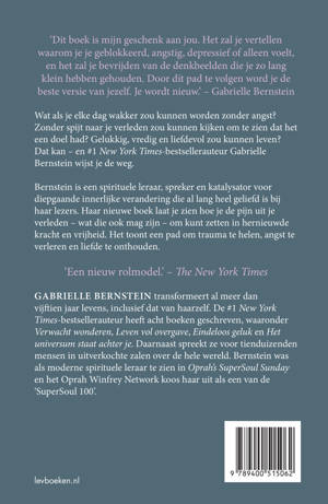 Al meer dan 15 jaar transformeert Gabrielle Bernstein levens, inclusief dat van haarzelf. De #1 New York Times-bestsellerauteur heeft acht boeken geschreven, waaronder Verwacht wonderen, Leven vol overgave, Eindeloos geluk en Het universum staat achter je. Daarnaast spreekt ze voor tienduizenden mensen in uitverkochte zalen over de hele wereld.
