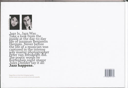 For over a year photographer Peter van Breukelen captured all activities of Holland's most exciting alt saxophone player, Benjamin Herman.\nPoet and performer Jules Deelder wrote a poem and the words for this boekthat looks to be a classic from the firts day it is published. "HAPPY MAN", a photo essay from the inside in classical black and white.\nWith a selection of photos from Happy Man Peter van Breukelen won the Silver Camera Award in 2008.