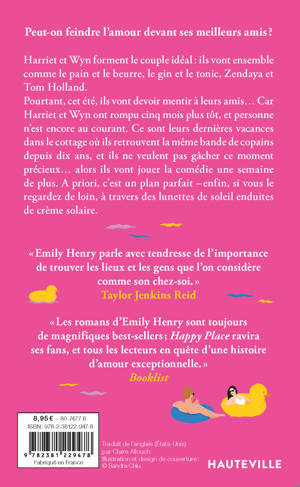Pourtant cet été, ils vont devoir mentir à leurs amis... Car Harriet et Wyn ont rompu six mois plus tôt, et personne n'est encore au courant. Ce sont leurs dernières vacances dans le cottage où ils retrouvent la même bande de copains depuis dix ans, et ils ne veulent pas gâcher ce moment précieux... alors ils vont jouer la comédie une semaine de plus. A priori, c'est un plan parfait - enfin, si vous le regardez de loin, à travers des lunettes de soleil enduites de crème solaire.