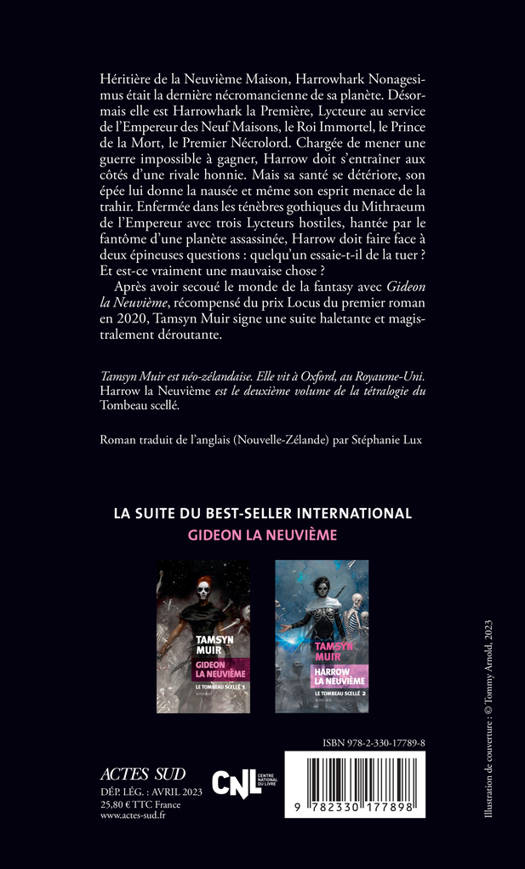 Héritière de la Neuvième Maison, Harrowhark Nonagesimus était la dernière nécromancienne de sa planète. Désormais elle est Harrowhark la Première, Lycteure au service de l'Empereur des Neuf Maisons, le Roi Immortel, le Prince de la Mort, le Premier Nécrolord. Chargée de mener une guerre impossible à gagner, Harrow doit s'entraîner aux côtés d'une rivale honnie. Mais sa santé se détériore, son épée lui donne la nausée et même son esprit menace de la trahir. Enfermée dans les ténèbres gothiques du Mithraeum de l'Empereur avec trois Lycteurs hostiles, hantée par le fantôme d'une planète assassinée, Harrow doit faire face à deux épineuses questions : quelqu'un essaie-t-il de la tuer ? Et est-ce vraiment une mauvaise chose ? Après avoir secoué le monde de la fantasy avec "Gideon la Neuvième", récompensé du prix Locus du premier roman en 2020, Tamsyn Muir signe une suite haletante et magistralement déroutante.