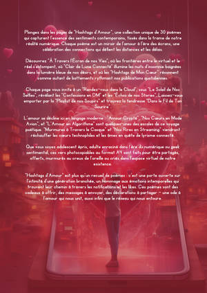 "Hashtags d'Amour" est plus qu'un livre, c'est une expérience qui allie la beauté intemporelle de la poésie à l'immédiateté de notre monde numérique. Disponible maintenant sur Amazon, prêt à enrichir le cœur et l'esprit des ados, des adultes et des geeks partout. Ne manquez pas de capturer et de partager l'essence de l'amour moderne.