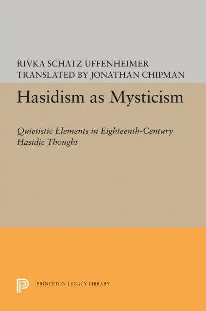 Offered here for the first time in English translation, Hasidism as Mysticism is a classic in its field. Using the tools of phenomenology, Rivka Schatz Uffenheimer places Hasidism squarely in the context of religious studies. Hasidism's theoretical texts have been largely ignored by historians of the movement, but Schatz Uffenheimer analyzes these materials fully, disclosing the mystical, quietistic tendencies that existed alongside Hasidism's more activist, popular elements. The author carefully reviewed this translation of her work; it includes a revised introduction with much new material, two new chapters, and an appendix containing a translation, history, and literary analysis of one of the few extant texts attributed to the Baal Shem Tov.