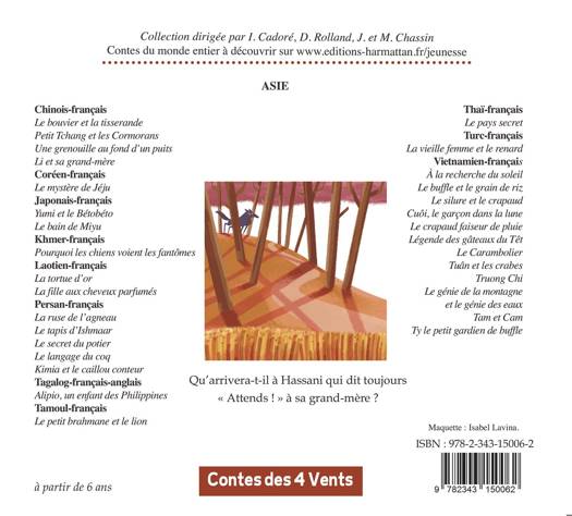 "Il était une fois une grand-mère qu'on appelait Bibi Golriz. Elle vivait dans une ferme avec son petit-fils, Hassani. Chaque fois qu'elle lui demandait quelque chose, il lui répondait : "Attends !"." Mais qu'arrivera-t-il donc à Hassani, le garçon qui dit toujours "Attends !" ? Album illustré en couleur, à partir de 6 ans.