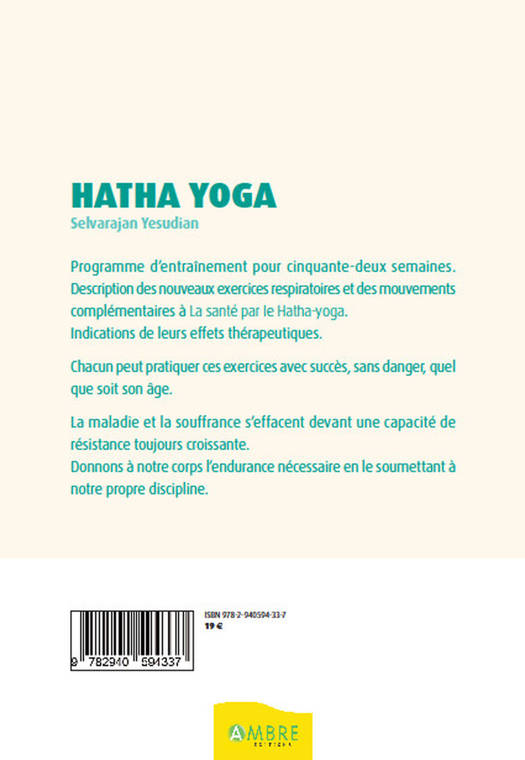 Programme d’entraînement pour cinquante-deux semaines. Description des nouveaux exercices respiratoires et des mouvements complémentaires à "La santé par le Hatha-yoga". Indications de leurs effets thérapeutiques. Chacun peut pratiquer ces exercices avec succès, sans danger, quel que soit son âge. La maladie et la souffrance s’effacent devant une capacité de résistance toujours croissante. Donnons à notre corps l’endurance nécessaire en le soumettant à notre propre discipline.