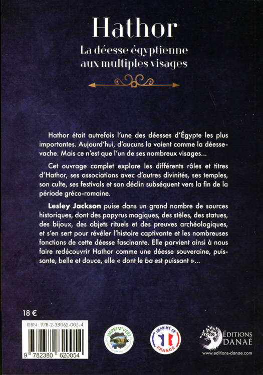Hathor était autrefois l'une des déesses d'Égypte les plus importantes. Aujourd'hui, d'aucuns la voient comme la déesse- vache. Mais ce n'est que l'un de ses nombreux visages... Cet ouvrage complet explore les différents rôles et titres d'Hathor, ses associations avec d'autres divinités, ses temples, son culte, ses festivals et son déclin subséquent vers la fin de la période gréco-romaine. Lesley Jackson puise dans un grand nombre de sources historiques, dont des papyrus magiques, des stèles, des statues, des bijoux, des objets rituels et des preuves archéologiques, et s'en sert pour révéler l'histoire captivante et les nombreuses fonctions de cette déesse fascinante. Elle parvient ainsi à nous faire redécouvrir Hathor comme une déesse souveraine, puissante, belle et douce, elle "dont le ba est puissant"...