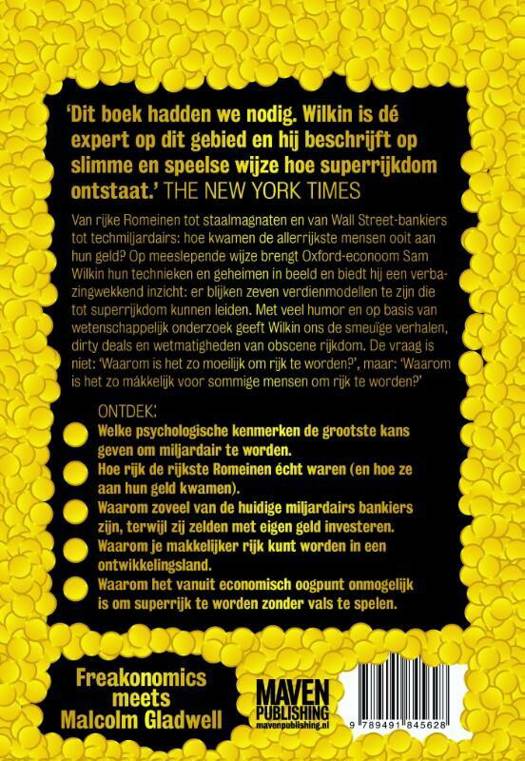 Van rijke Romeinen tot staalmagnaten en van Wall Street-bankiers tot techmiljardairs: hoe kwamen de allerrijkste mensen ooit aan hun geld? Op meeslepende wijze brengt Oxford-econoom Sam Wilkin hun technieken en geheimen in beeld en biedt hij een verbazingwekkend inzicht: er blijken zeven verdienmodellen te zijn die tot superrijkdom kunnen leiden. Met veel humor en op basis van wetenschappelijk onderzoek geeft Wilkin ons de smeuïge verhalen, dirty deals en wetmatigheden van obscene rijkdom. De vraag is niet: 'Waarom is het zo moeilijk om rijk te worden?', maar: 'Waarom is het zo mákkelijk voor sommige mensen om rijk te worden?'