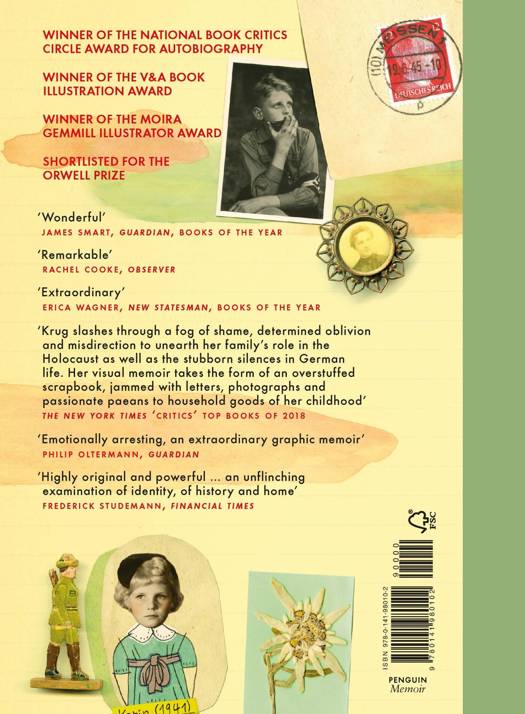 Nora Krug is a German-American author, illustrator and associate professor in the Illustration Program at the Parsons School of Design in New York City. Her drawings and visual narratives have appeared in publications including The New York Times, the Guardian and le Monde Diplomatique, and in a number of anthologies. A recipient of numerous prestigious fellowships, her books are included in the Library of Congress and the Rare Book and Manuscript Library at Columbia University. Her illustrations have been recognized with three gold medals from the Society of Illustrators and a Silver Cube from the New York Art Directors Club. Krug's work has been exhibited internationally, and her animations shown at the Sundance Film Festival.